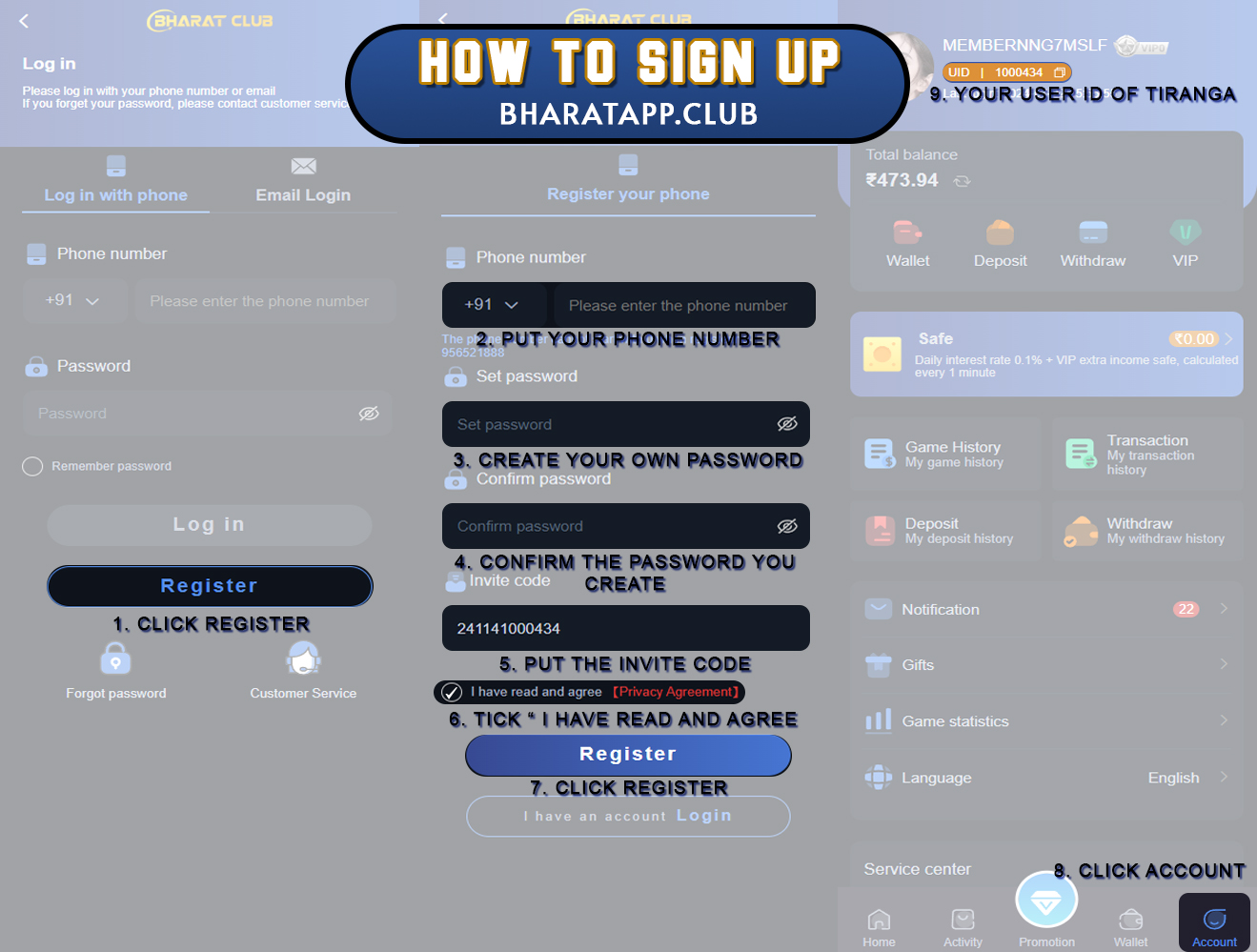 1. Visit the Website or Download the App: Access Bharat Games Club via its official website or download the app on Android or iOS.